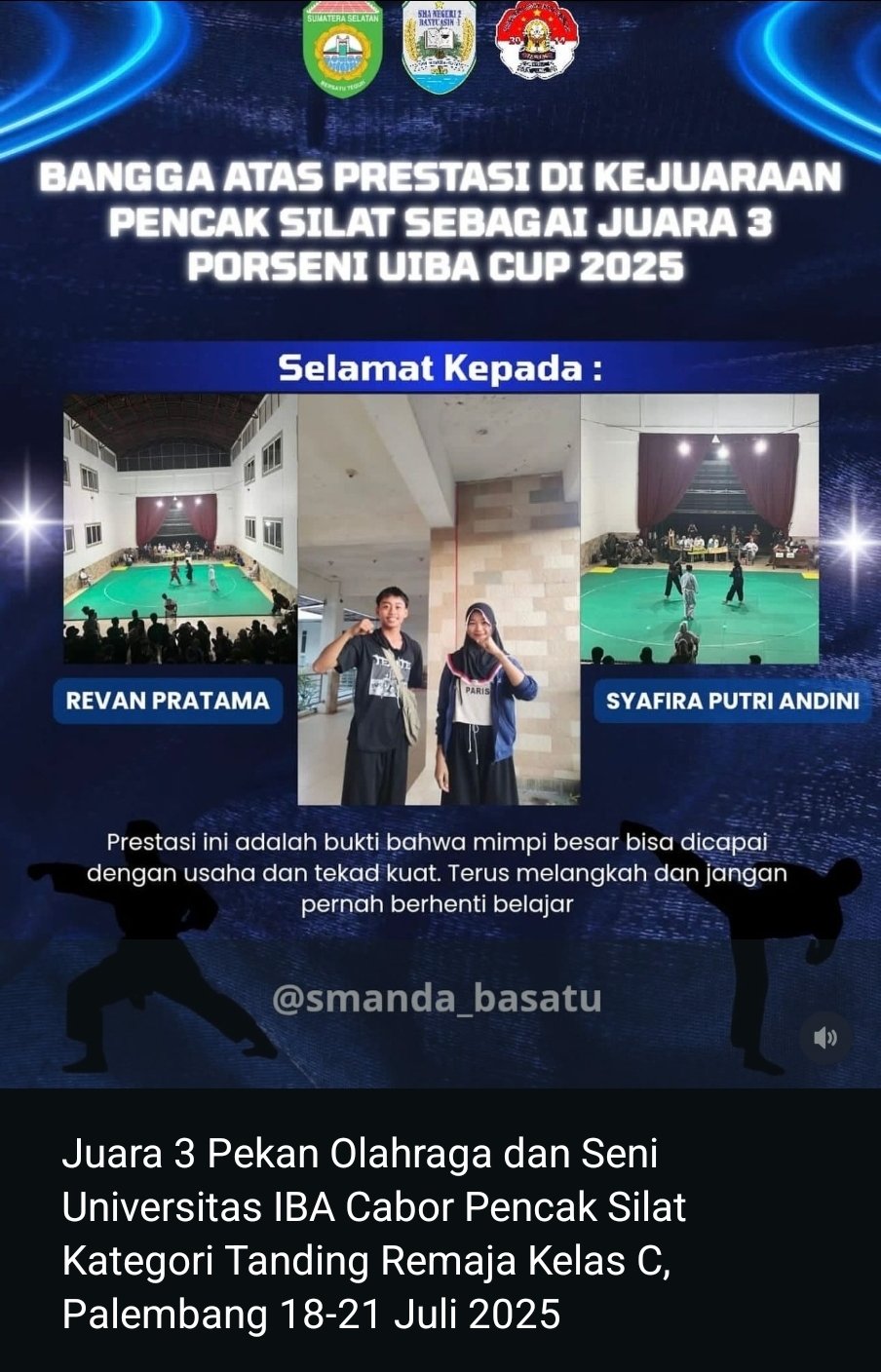 Masih prestasi dibidang olahraga, siswa SMA N 2 Banyuasin I juga berhasil menjadi juara ke 3 dalam pekan Olahraga dan seni Universitas IBS Cabor pencak silat katagori Tanding remaja kelas C, yang diselenggarakan di kota Palembang.