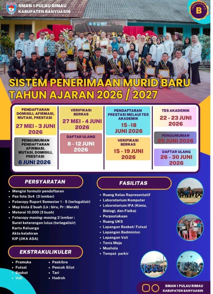Journalpos.co — BANYUASIN – SMA Negeri 1 Pulau Rimau, Kabupaten Banyuasin, resmi membuka Sistem Penerimaan Murid Baru (SPMB) untuk Tahun Ajaran 2026/2027.